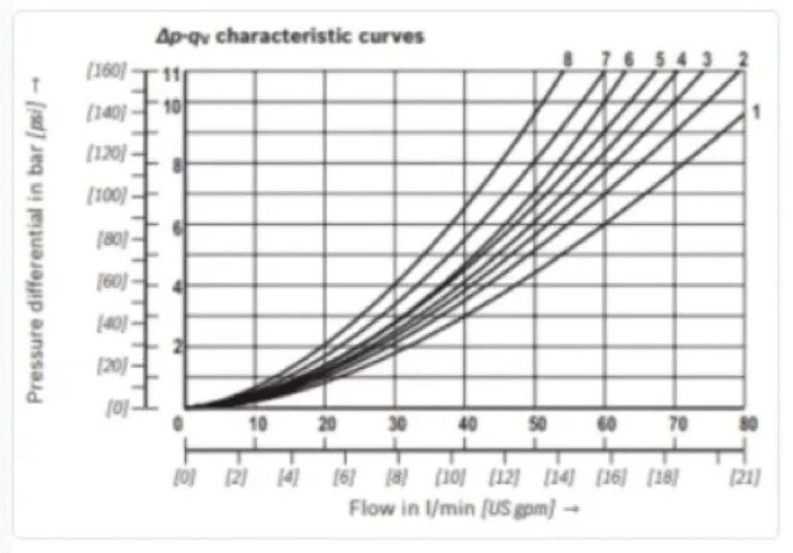 所有阀门都有不同的流动通道和流体方向变化,这将在特定流量下产生一定的压降。这些压降因不同的阀芯类型而异,这对于控制能源效率并确保负载有足够的可用压力非常重要。